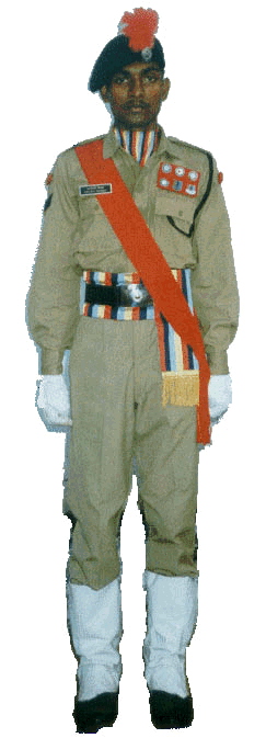 If you meet the physical standards and if all is well you will receive your kit which contains uniform, berret cap, cap badge, hackles, web belt, etc. An indentification card is issued, but it might take some time, since it comes from the Battalion HQ. An NCC troop cannot have more than 100 cadets in its roll, so if you want to join, do it quick. The recruitment begins every academic year.